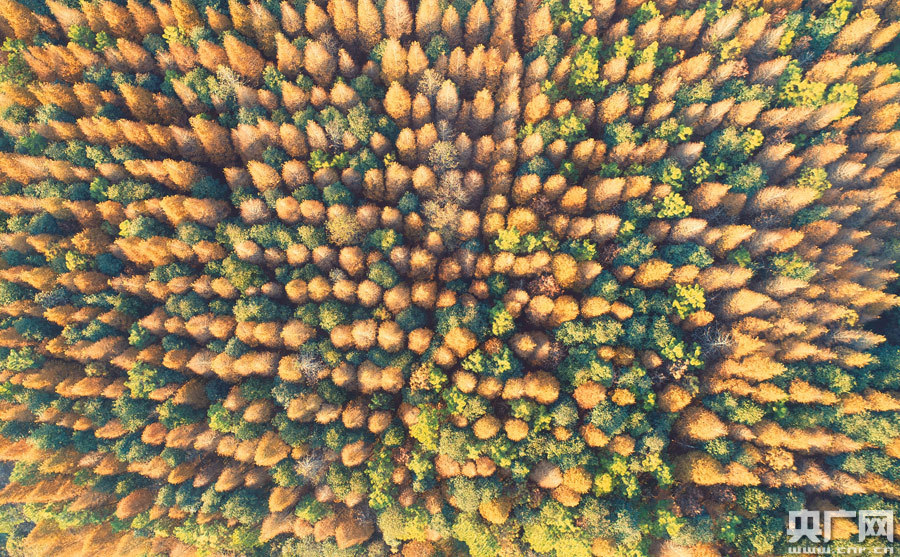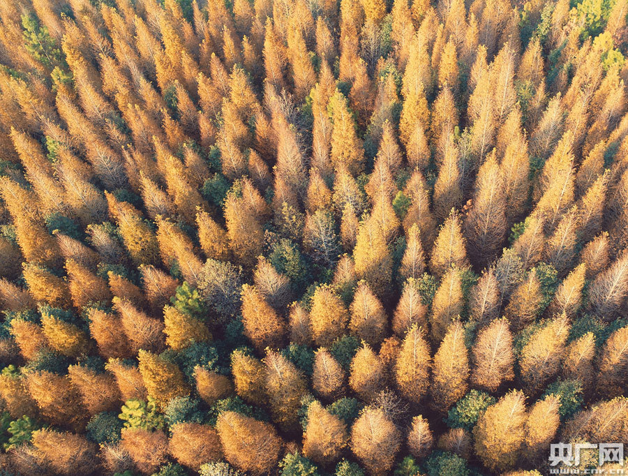 央廣網(wǎng)泰和11月26日消息(記者王一凡 通訊員鄧和平)11月22日,在江西省吉安市泰和縣水槎鄉(xiāng)新橋村,無(wú)人機(jī)空中俯瞰,整齊劃一的生態(tài)公益林水杉樹(shù)葉泛黃,層林盡染,蔚為壯觀,構(gòu)成一幅美不勝收的深秋畫(huà)卷。