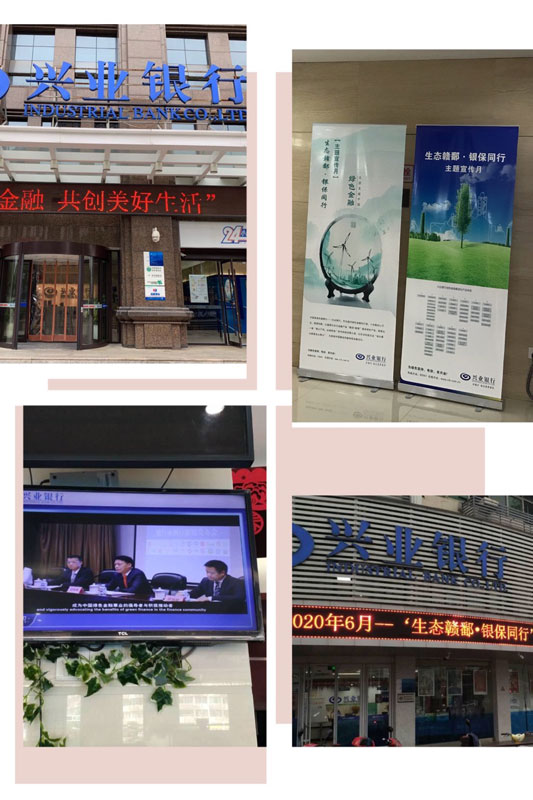 興業(yè)銀行南昌分行以營業(yè)網(wǎng)點為宣傳基地,通過LED屏播放宣傳標語、電視屏播放宣傳視頻、在營業(yè)大廳放置宣傳易拉寶,以多元化方式向社會大眾開展宣傳普及綠色金融支持政策、產(chǎn)品體系等內(nèi)容。