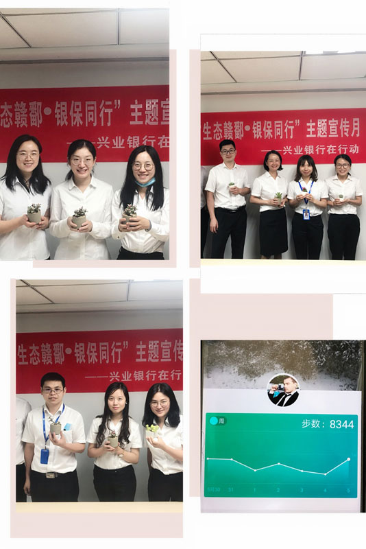 興業(yè)銀行南昌分行開展全員共計756人的綠色金融專項線上答題活動、全員綠色金融線上專項培訓,使分行全體員工進一步了解綠色金融相關知識。同時,為鼓勵全體員工綠色出行,在全行范圍內(nèi)開展“小綠植的環(huán)保旅游”活動。在6月5日世界環(huán)境日當天,員工可通過微信步數(shù)或者共享單車騎行時間兌換小綠植,活動參與人數(shù)高達428人。