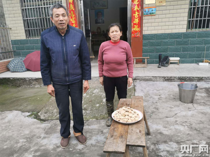 老謝夫婦和他家自制的米餅(央廣網(wǎng)發(fā) 通訊員供圖)