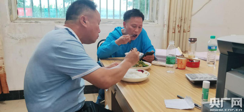 “連心”小分隊(duì)成員忙碌一整天后簡單用食(央廣網(wǎng)發(fā) 通訊員供圖)
