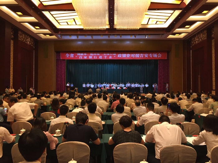 央廣網(wǎng)6月30日江西報道:6月29日,全省“降成本、優(yōu)環(huán)境”專項行動暨“百家銀行進千企”政銀企對接會(吉安專場)在吉安賓館會議中心舉行。活動由省政府金融辦、省工信委、人行南昌中支、江西銀監(jiān)局、吉安市人民政府聯(lián)合舉辦,吉安市委常委、常務副市長楊丹,省政府金融辦副主任許忠華同志分別致辭,省內31家銀行、證券、保險機構負責同志,吉安市相關部門及70多家企業(yè)的代表,并邀請了省委組織部、省委政法委、省人社廳、省環(huán)保廳、省農業(yè)廳、省水利廳、省文化廳、省新聞出版廣電局、省社科院、省農業(yè)開發(fā)辦、省地礦局、南昌海關、江西保監(jiān)局等掛點吉安地區(qū)園區(qū)省直部門參會。