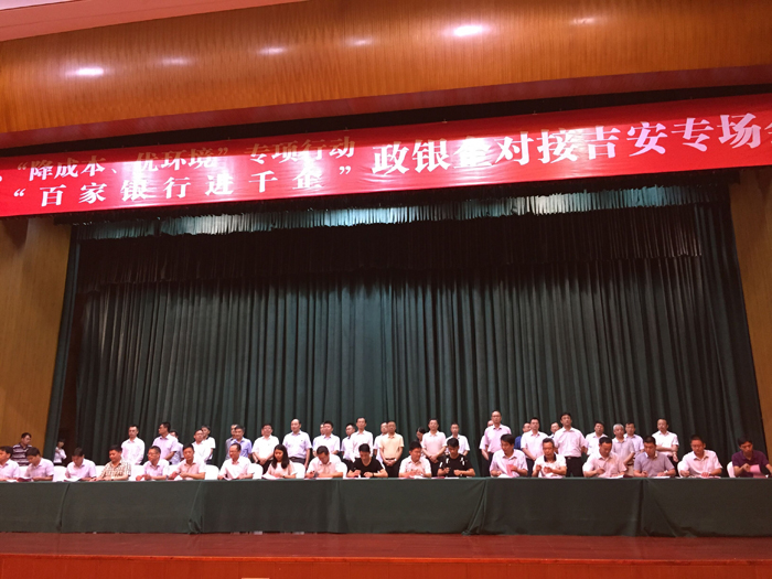 本次對接活動組織收集了吉安市的企業(yè)融資項目335個,融資需求353.8億元;已成功對接企業(yè)和項目140個,融資總額207.53億元。對接會上,共簽約69個項目,簽約金額達到114.3億元,其中:實體企業(yè)項目52個,金額54億元;基礎設施項目17個,金額60.3億元。除此之外,還有北京銀行南昌分行、江西銀行、九江銀行和平安養(yǎng)老保險公司等4家金融機構與吉安市政府簽訂戰(zhàn)略合作協(xié)議,江西銀行、九江銀行與吉安市的平臺公司簽訂產(chǎn)業(yè)基金合作協(xié)議。