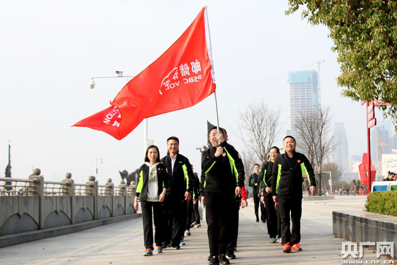 郵儲銀行南昌市分行健步走員工昂首挺胸闊步向前(央廣網(wǎng)發(fā) 段明紅/攝)
