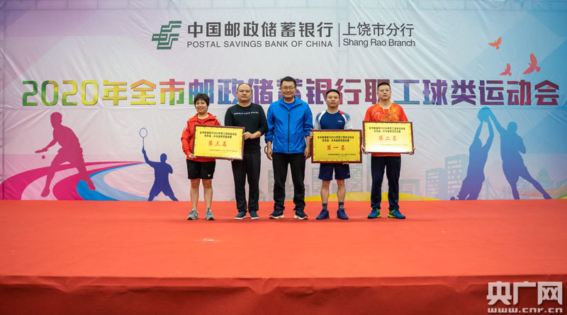 央廣網(wǎng)上饒10月12日消息(記者王一凡 通訊員饒夢婷)追逐十月的和風(fēng),沐浴金秋的陽光,在這丹桂飄香碩果累累的季節(jié)里,為豐富和活躍職工精神文化生活,營造團(tuán)結(jié)、拼搏、進(jìn)取、和諧的文化氛圍,進(jìn)一步增強(qiáng)企業(yè)凝聚力、向心力和戰(zhàn)斗力,10月10日至11日,郵儲(chǔ)銀行上饒市分行在上饒市萬力時(shí)代廣場順利舉辦了“2020年全市郵政儲(chǔ)蓄銀行職工球類運(yùn)動(dòng)會(huì)”。該市分行領(lǐng)導(dǎo)班子成員,各縣(市、區(qū))支行工會(huì)主席,該市分行機(jī)關(guān)、市分行營業(yè)部以及各縣(市、區(qū))支行員工代表,裁判員、運(yùn)動(dòng)員等200余人參加了開幕式。該市分行黨委委員、副行長、工會(huì)主席程中堅(jiān)致開幕詞;該市分行黨委書記許光進(jìn)講話并宣布2020年全市郵政儲(chǔ)蓄銀行職工球類運(yùn)動(dòng)會(huì)開幕。