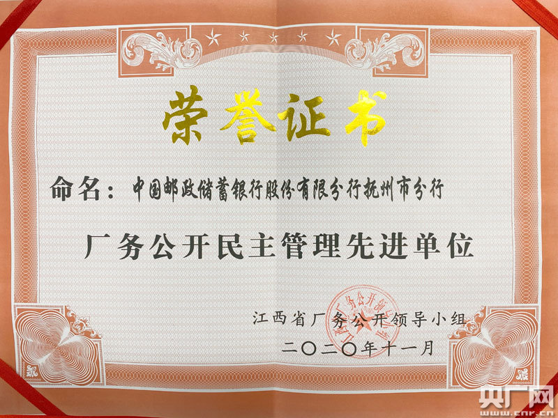央廣網(wǎng)撫州1月5日消息(記者王一凡 通訊員涂畢旺)日前,江西省廠務(wù)公開領(lǐng)導(dǎo)小組評(píng)選了一批“廠務(wù)公開民主管理先進(jìn)單位”,郵儲(chǔ)銀行撫州市分行歷經(jīng)層層評(píng)選,喜獲全省“廠務(wù)公開民主管理先進(jìn)單位”稱號(hào)。廠務(wù)公開是企業(yè)民主管理工作的重要形式,是職工知情權(quán)、參與權(quán)、監(jiān)督權(quán)的重要保證。一直以來,郵儲(chǔ)銀行撫州市分行高度重視民主管理工作,一直把民主管理擺到重要位置,積極推行行務(wù)公開,始終堅(jiān)持以人為本,不斷推進(jìn)企業(yè)民主管理制度化、規(guī)范化、法制化建設(shè),努力推動(dòng)企業(yè)民主管理深入發(fā)展。在加強(qiáng)基層民主政治建設(shè)、構(gòu)建和諧勞動(dòng)關(guān)系、維護(hù)職工隊(duì)伍和社會(huì)穩(wěn)定、促進(jìn)經(jīng)濟(jì)平穩(wěn)健康發(fā)展做了大量工作,取得了積極的效果。