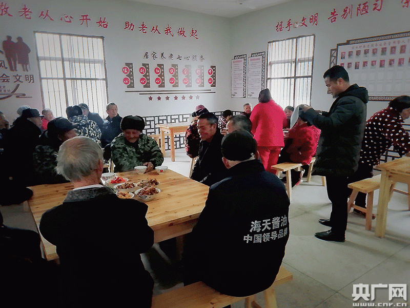 “2020年,由于疫情原因,村里很多外出務(wù)工的村民沒有回家,而團(tuán)圓飯對于一些高齡老人有著特殊的意義,他們渴望全家團(tuán)圓,因此村干部們在老年食堂里準(zhǔn)備了團(tuán)圓飯,陪村里的老人們提前過節(jié)!迸髽反妩h支部書記郭培和說。