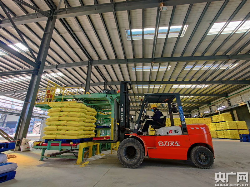 車間內(nèi)運(yùn)輸化肥忙(央廣網(wǎng)發(fā) 通訊員供圖)
