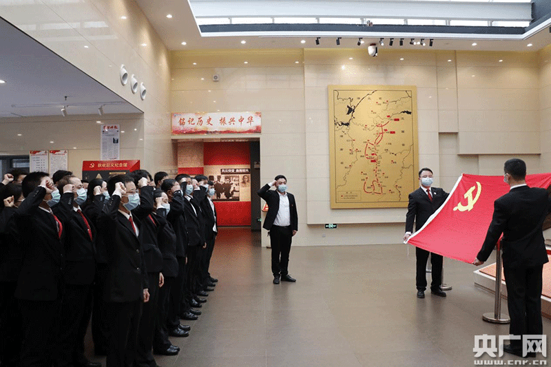 在紀(jì)念館內(nèi),一幅幅珍貴照片、一件件革命實(shí)物、一座座精致雕塑展示著革命烈士的英雄事跡。大家駐足觀看,仔細(xì)聆聽,感悟革命先烈舍身取義的壯麗人生,追思革命先烈浴血奮戰(zhàn)的光輝歷程,并在館內(nèi)重溫入黨誓詞,重憶入黨初心。