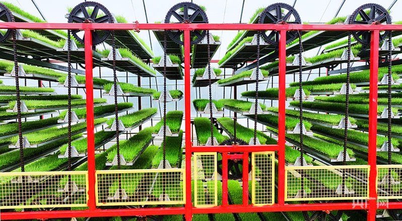 張祖權的“慧”種田,始于育秧。在桐木鎮(zhèn)湖塘村的綠豐農業(yè)立體育秧工廠,仿佛置身于現代化的工業(yè)車間。兩排循環(huán)立體育秧床正有序地上下運轉,打破了傳統育秧的空間限制。