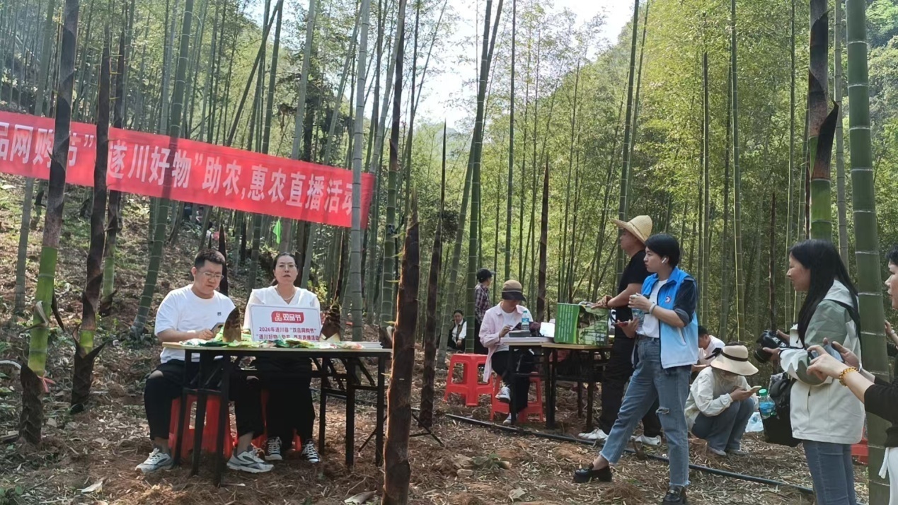 4月9日上午,江西吉安市遂川縣衙前鎮(zhèn)上芫村的竹筍基地園里熱鬧非凡。與往常不同的是,這里支起了直播設(shè)備,“四個(gè)100”文化導(dǎo)師齊佳將她的“齊享佳貨”直播間從室內(nèi)“搬”到了竹林深處,開展了一場(chǎng)別開生面的助企直播活動(dòng),以實(shí)際行動(dòng)指導(dǎo)當(dāng)?shù)仄髽I(yè)直播帶貨。
