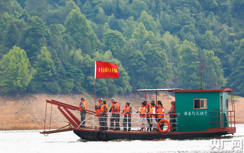 應(yīng)急搶險(xiǎn)隊(duì)員正在演練解救轉(zhuǎn)移庫區(qū)被困群眾
