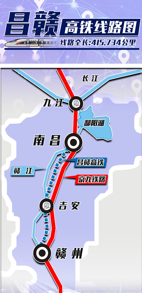 昌贛高鐵建成后,與滬昆高鐵共同構(gòu)成了江西省“十”字形的高速鐵路主骨架,江西將實(shí)現(xiàn)市市通動(dòng)車,井岡山革命老區(qū)、贛南等原中央蘇區(qū)也將正式邁入高鐵時(shí)代。昌贛高鐵通車將極大拉近江西省內(nèi)各地的時(shí)空距離,屆時(shí)南昌至贛州乘高鐵只需要兩個(gè)小時(shí)就能到達(dá)。江西省將形成以省會(huì)南昌為中心,覆蓋全省設(shè)區(qū)市的“2小時(shí)生活圈”,以及輻射粵、閩、湘、浙、滬、皖、鄂等周邊省市的 4小時(shí)“高鐵朋友圈”。目前,贛州至深圳的贛深高鐵正在建設(shè)中,計(jì)劃于2021年實(shí)現(xiàn)全線貫通,屆時(shí),江西將與粵港澳大灣區(qū)、閩東南、長(zhǎng)三角經(jīng)濟(jì)區(qū)實(shí)現(xiàn)高鐵互聯(lián)互通。