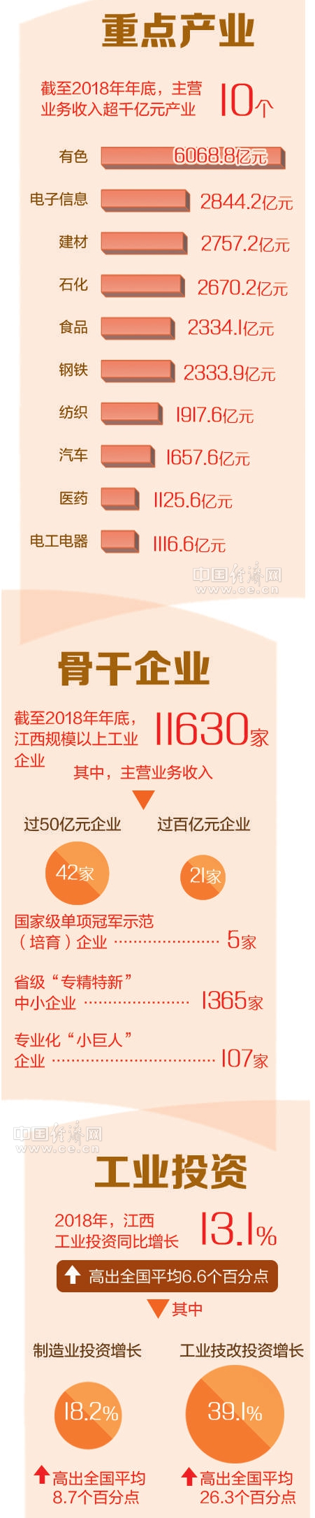 結(jié)構(gòu)更“新”、質(zhì)量更“優(yōu)”、模式更“綠”,是時下江西制造呈現(xiàn)出的喜人景象。2018年,全省全部工業(yè)增加值8113億元、增長8.7%;規(guī)模以上工業(yè)增加值同比增長8.9%,列全國第8位。