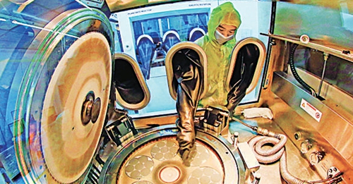 圖片說明:晶能光電硅襯底GaN外延生產(chǎn)車間。 郭 晶攝