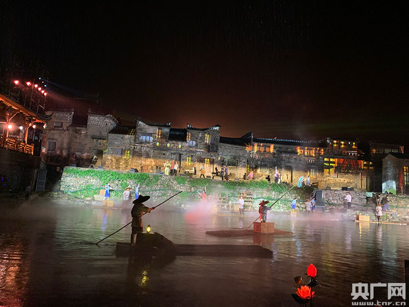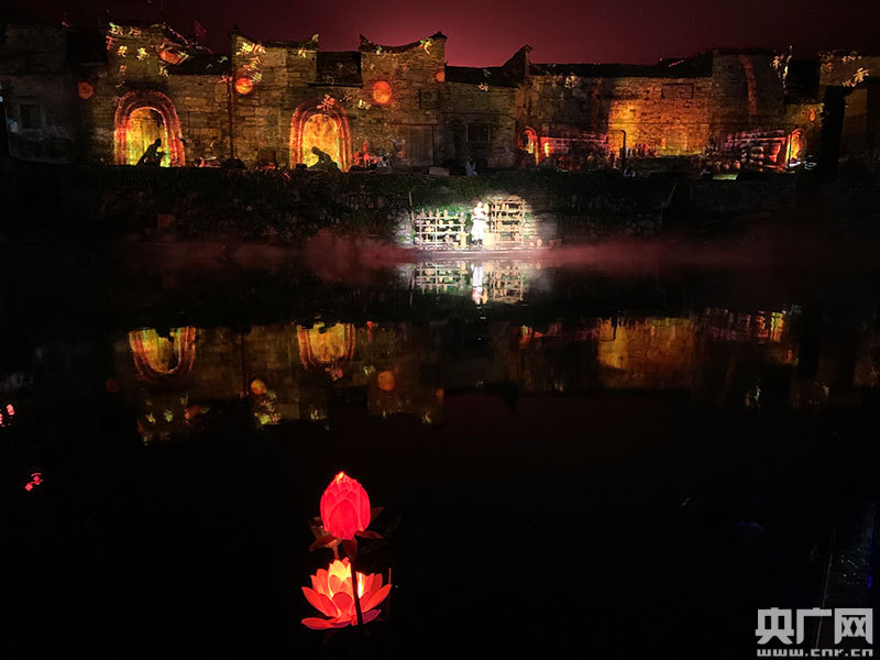 在瑤里古鎮(zhèn),“浮瑤映月”瓷茶水陸體驗(yàn)秀以瑤里的自然水陸風(fēng)光作為天然演出舞臺,古鎮(zhèn)建筑群為屏幕,近百米實(shí)景幕墻激光投影,電光流影,目眩神迷。融入浮梁特色文化內(nèi)容而獨(dú)家定制的近20組超大主題彩燈,造型夢幻震撼。獨(dú)特的藝術(shù)場景,頂尖演藝科技手段的多元化運(yùn)用,為觀眾帶來嘆為觀止的視覺沖擊。