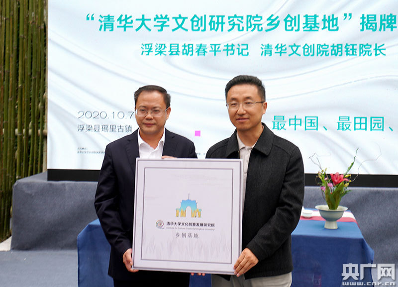 清華大學新聞與傳播學院黨委書記、清華大學文化創(chuàng)意發(fā)展研究院執(zhí)行院長胡鈺和浮梁縣委書記胡春平在活動中共同為“清華大學文化創(chuàng)意發(fā)展研究院鄉(xiāng)創(chuàng)基地”揭牌,標志著文創(chuàng)院鄉(xiāng)創(chuàng)基地正式落戶浮梁。