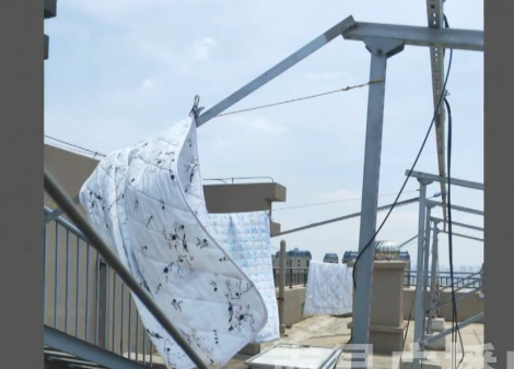 晾曬在頂樓的被子被風(fēng)刮了下來(lái),這一幕恰巧被對(duì)面的居民給拍下。但是根據(jù)居民反映,同樣的狀況已不是第一次出現(xiàn)。據(jù)了解,該小區(qū)為綠地國(guó)際博覽城二期博隆小區(qū),居民反映此前未有此類(lèi)狀況發(fā)生,而事件的誘因竟是因?yàn)轫敇羌茉O(shè)的光伏板。
