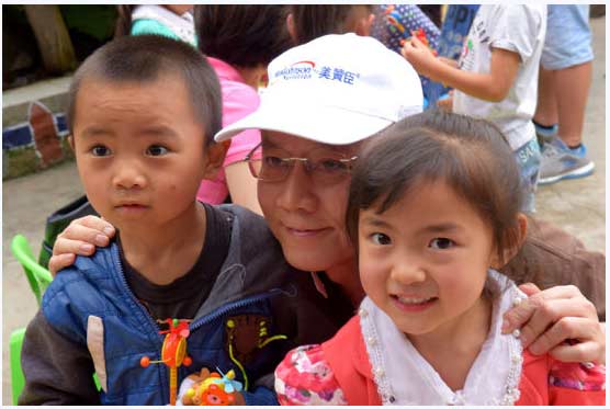 美贊臣大中華區(qū)總裁游佩瑜與山村幼兒園孩子共繪彩圖