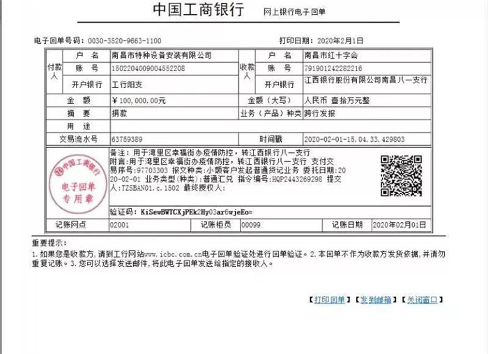 灣里區(qū)人大代表喻海同志代表南昌市特種設(shè)備安裝有限公司向南昌市紅十字會捐款10萬元,定向用于灣里區(qū)幸福街道新型冠狀病毒肺炎防疫防控工作。