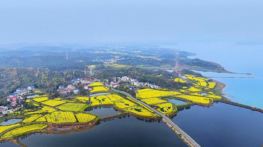 江西湖口:油菜花海繪生態(tài) “微笑天使”逐浪來