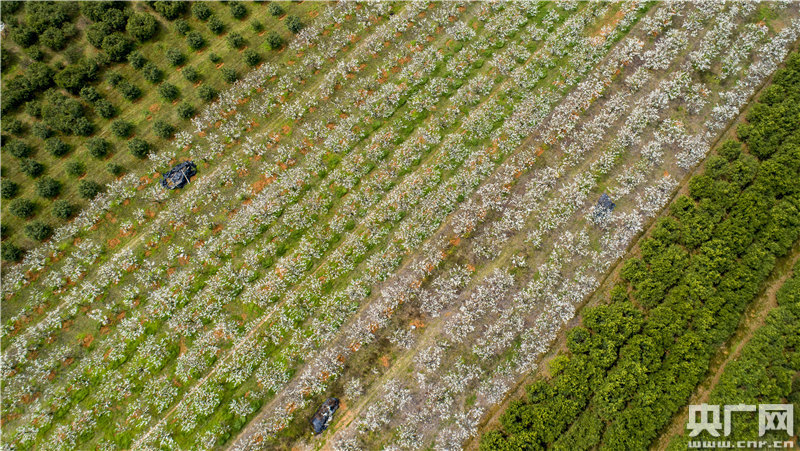 2021年3月15日,江西省新余市渝水區(qū)羅坊鎮(zhèn)王年村翠冠梨生態(tài)種植園,梨花綻放白如雪。數(shù)千畝果業(yè)基地內(nèi),一簇簇梨花隨風(fēng)搖曳引來(lái)蜜蜂無(wú)數(shù)。果農(nóng)忙碌于開(kāi)溝施放有機(jī)肥、疏花等春管作業(yè)。春管保果關(guān)鍵期,當(dāng)?shù)毓r(nóng)搶抓有力天氣對(duì)梨樹(shù)進(jìn)行精細(xì)管理,為豐收增收做足準(zhǔn)備。(記者胡斐 通訊員趙春亮)