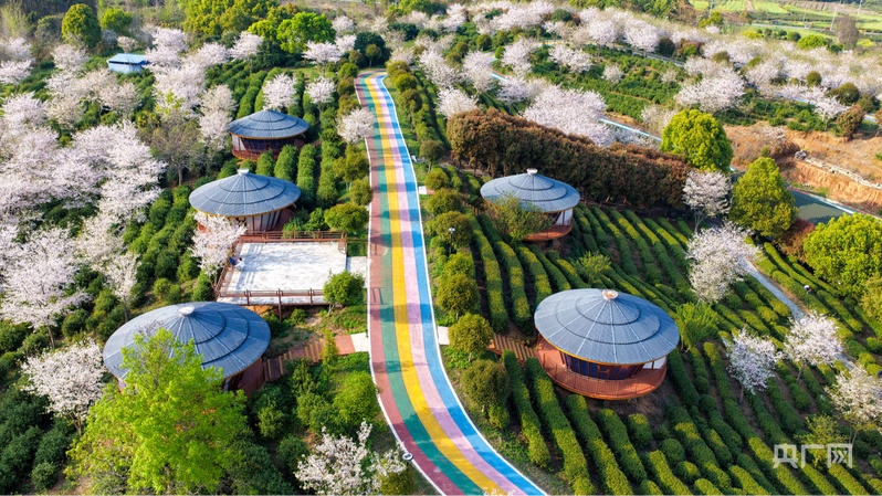 海廬茶博園內櫻花爛漫、春色滿園(央廣網發(fā) 韓俊烜 攝)