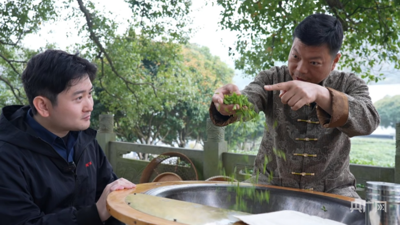 西湖龍井茶制作技藝非遺代表性傳承人展示“梅派技藝”手法(央廣網見習記者 于東冉 攝)