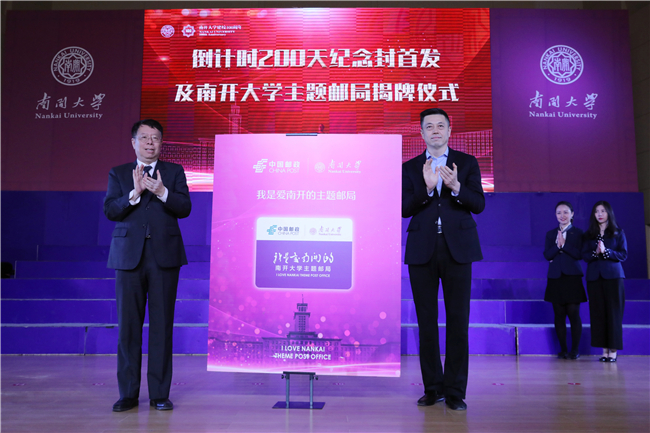 為更好服務師生校友,助力百年校慶,“我是愛南開的”主題郵局正式揭牌成立,謝文超與南開大學副校長、南開校友總會常務副理事長朱光磊為主題郵局揭幕。該主題郵局位于南開大學八里臺校區(qū)品牌文化店,將陸續(xù)提供國內和國際信函、明信片、EMS全球特快專遞、校園慢遞服務、集郵知識講座、個性化郵品制作、南開大學紀念郵戳等全方位郵政服務。