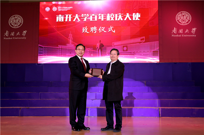 為向海內外宣傳南開,積極展現百年南開形象,南開大學正在面向海內外校友和社會熱心人士開展百年校慶大使聘任活動,目前已聘任兩批校慶大使。南開大學建校100周年倒計時200天活動現場,又有21名校友獲聘校慶大使,南開大學校長曹雪濤為他們頒發(fā)聘書。