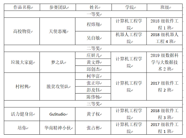 8月18日,中國高校計算機大賽-微信小程序應用開發(fā)賽(2020)全國總決賽落下帷幕并公示了獲獎名單。華南理工大學廣州學院共有11名學生獲獎,其中程煒翔和吳自敏獲得了華南賽區(qū)一等獎,全國三等獎;莊妍兒、黃文燁、邱創(chuàng)杰、柯華富、張正印、彭及鈺和陳偉暢獲得了華南賽區(qū)二等獎;黃子權和張占彬獲得了華南賽區(qū)三等獎。