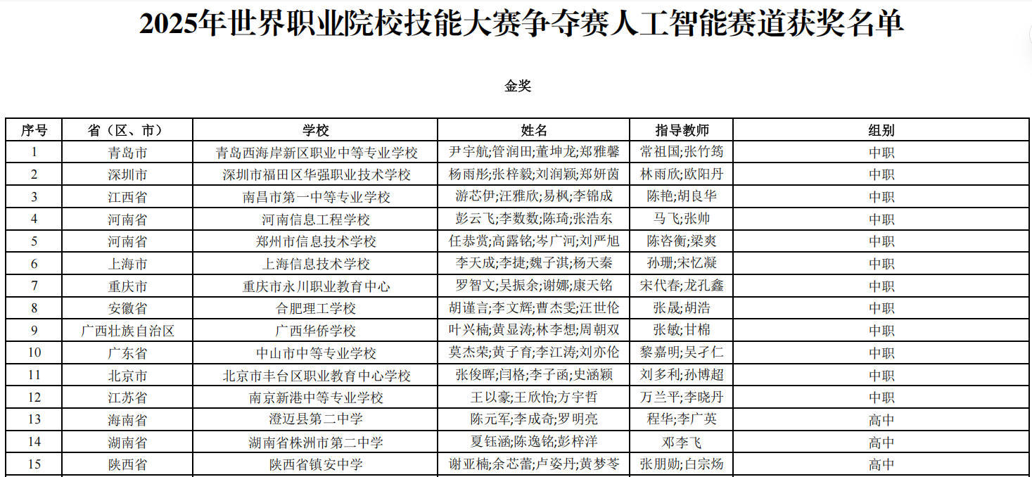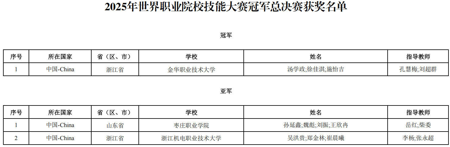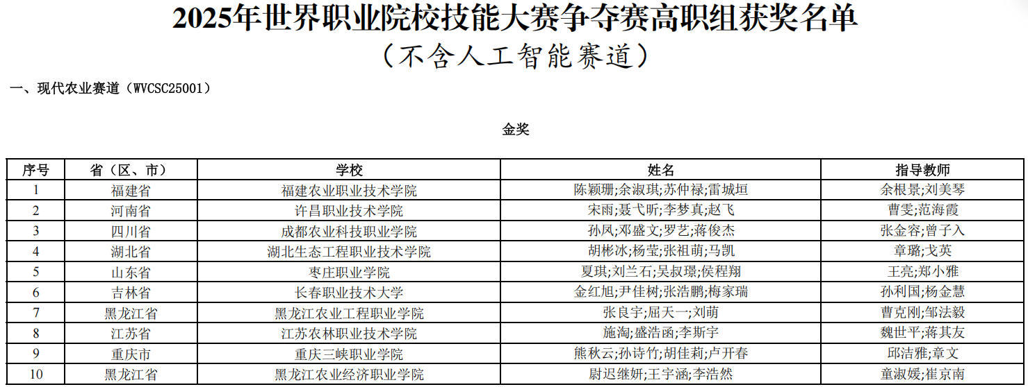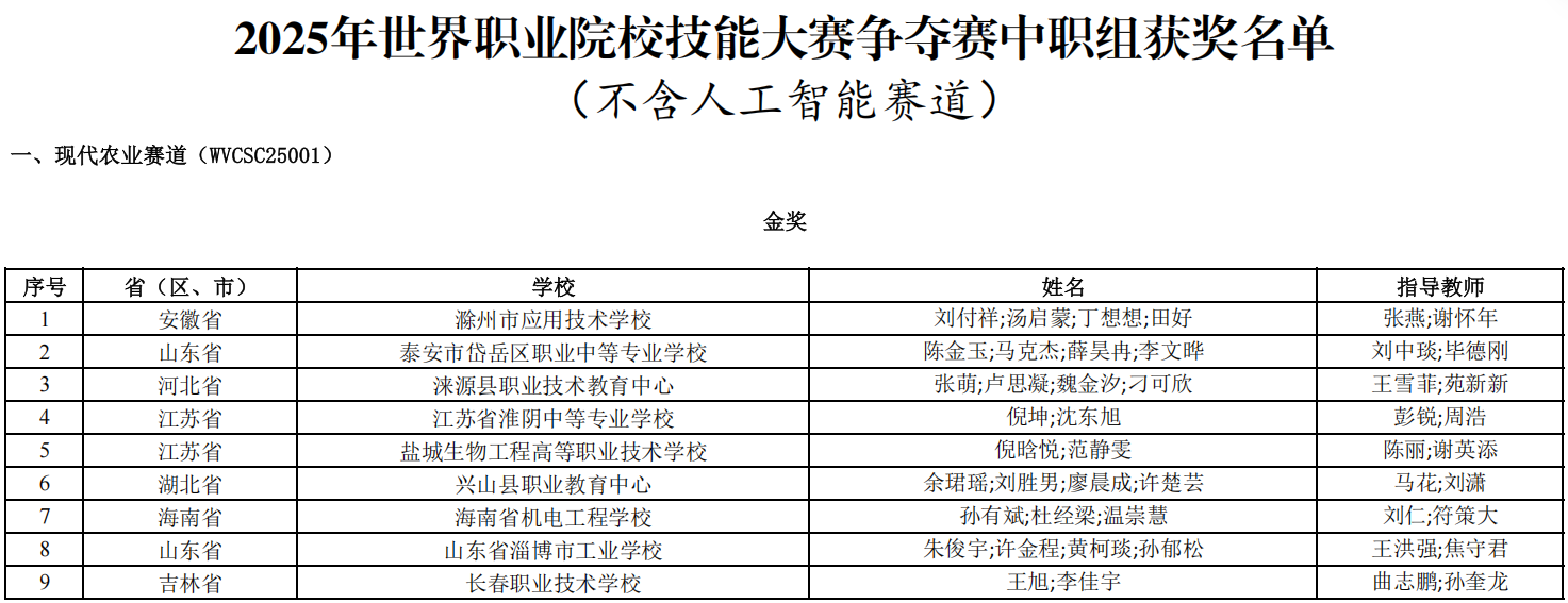 央廣網(wǎng)北京3月31日消息(記者果君)教育部日前公布了2025年世界職業(yè)院校技能大賽獲獎名單。
