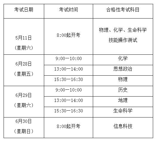 考生若有思想政治、歷史、地理、物理、化學(xué)、生命科學(xué)、信息科技合格性考試科目不合格,可選擇參加1月或6月對(duì)應(yīng)科目的合格性考試補(bǔ)考(信息科技科目補(bǔ)考僅在6月份開設(shè)),次數(shù)不限。其他科目合格性考試成績(jī)不合格的在校生由所在高中學(xué)校組織補(bǔ)考。
