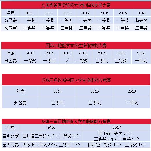 我校學(xué)生參加國內(nèi)、國際醫(yī)學(xué)技能競賽活動多次獲獎。其中臨床醫(yī)學(xué)專業(yè)學(xué)生參加了7屆全國高等醫(yī)學(xué)院校大學(xué)生臨床技能競賽,獲得西南西北片區(qū)特等獎1次,一等獎6次,全國總決賽二等獎3次,三等獎4次;口腔醫(yī)學(xué)專業(yè)學(xué)生參加國際口腔醫(yī)學(xué)本科生操作技能大賽多次獲獎。