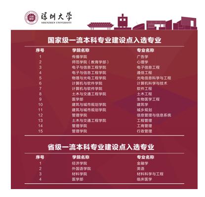 關于優(yōu)勢專業(yè),大家可以重點關注一下2020年初教育部公布的首批一流本科專業(yè)建設點名單,深大有19個專業(yè)入選: