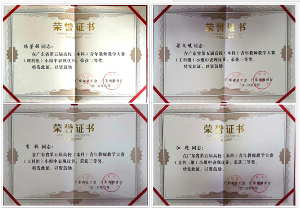 學(xué)校高度重視廣東省高校(本科)青年教師教學(xué)大賽和青年教師教學(xué)能力提升,堅(jiān)持“以賽促教、以賽促改”,已經(jīng)舉辦了八屆校青年教師教學(xué)大賽,通過(guò)大賽不僅提高了學(xué)校青年教師教學(xué)能力,而且為省教學(xué)大賽選送了不少高水平的選手。此次大賽,學(xué)校從近四屆校賽獲獎(jiǎng)教師中遴選了一批“種子選手”,經(jīng)過(guò)教師自主報(bào)名、參賽資格審查、專家評(píng)審后,按大賽要求和競(jìng)賽組別推薦了5位教師參加教學(xué)大賽網(wǎng)絡(luò)評(píng)選。