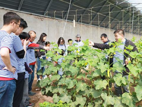 翠圃園總經(jīng)理王積越向大家講解水果黃瓜的種植知識