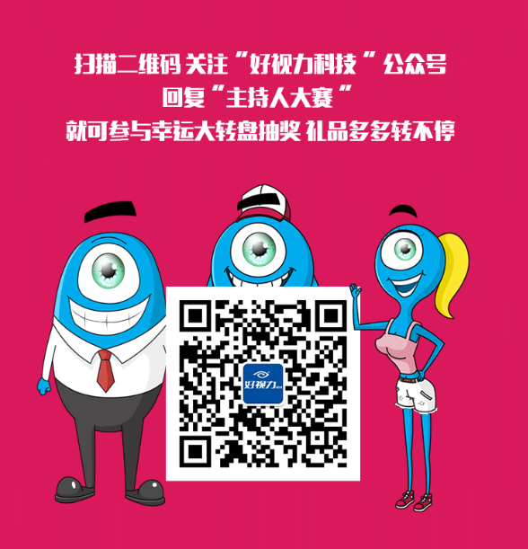 同時(shí),投票成功后,可關(guān)注微信公眾號(hào)“好視力科技”回復(fù)“主持人大賽”,就可參與幸運(yùn)大轉(zhuǎn)盤(pán)抽獎(jiǎng),禮品多多轉(zhuǎn)不停。