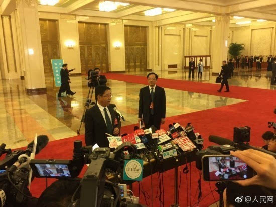 #2017看兩會(huì)#部長(zhǎng)通道:新任商務(wù)部長(zhǎng)鐘山回答現(xiàn)場(chǎng)記者提問。(人民網(wǎng)前方報(bào)道組)