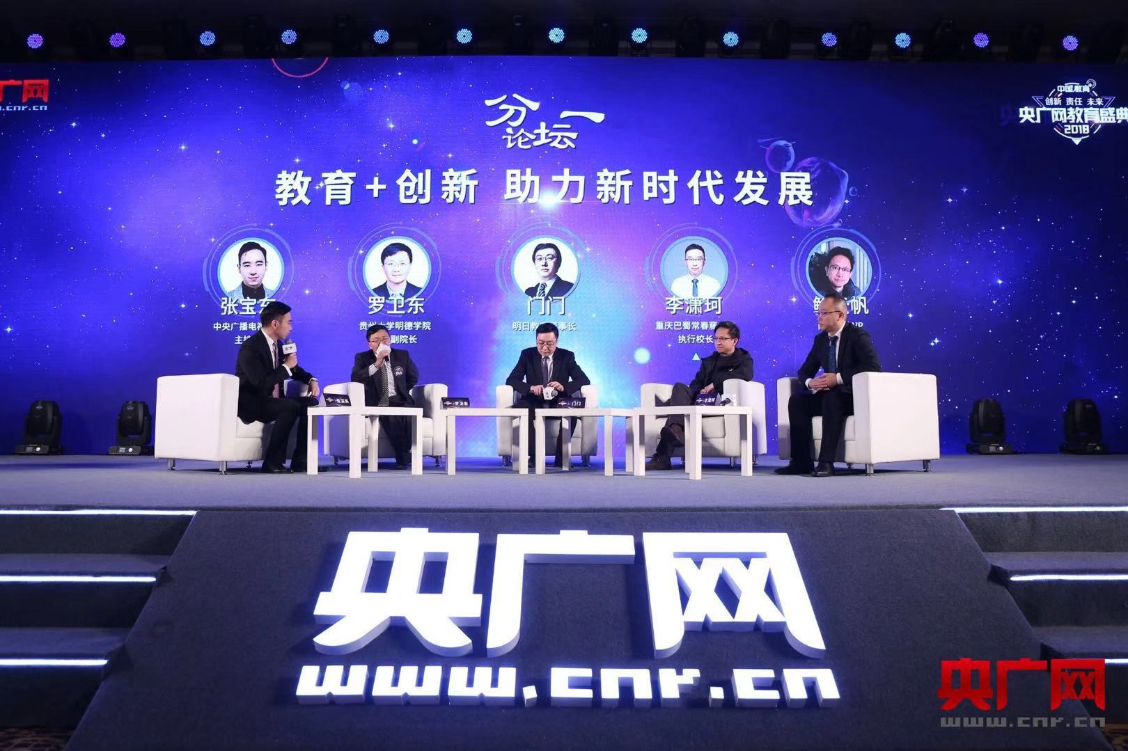 12月13日,2018中國教育+峰會暨央廣網(wǎng)教育盛典在京舉行。本次盛典聚集了業(yè)內(nèi)知名專家、學(xué)者,企業(yè)領(lǐng)袖等,在“創(chuàng)新 責(zé)任 未來”主題下,共商中國教育在變革時代的發(fā)展與未來。盛典期間,中央廣播電視總臺主持人張寶東、貴州大學(xué)明德學(xué)院常務(wù)副院長羅衛(wèi)東、重慶巴蜀常春藤學(xué)校執(zhí)行校長李瀟珂、明日教育董事長門門及尚德機構(gòu)VP鮑云帆共同參與了“教育+創(chuàng)新 助力新時代發(fā)展”圓桌論壇的討論,文字實錄如下。