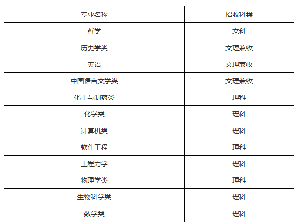 2、獲得全國(guó)中學(xué)生(數(shù)學(xué)、物理、化學(xué)、生物學(xué)、信息學(xué))奧林匹克競(jìng)賽總決賽二等獎(jiǎng)及以上考生經(jīng)我校專家考核測(cè)試合格者,高考投檔成績(jī)達(dá)到生源地相應(yīng)科類本科第一批次錄取控制分?jǐn)?shù)線以上時(shí)(在實(shí)行高考綜合改革的上海市和浙江省,高考投檔成績(jī)達(dá)到自主招生最低錄取控制參考線以上時(shí))予以錄取。專業(yè)選擇范圍如下: