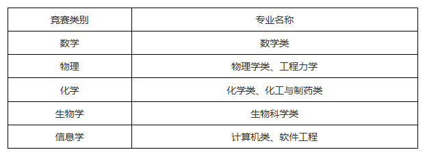表4:奧林匹克競(jìng)賽總決賽考生專業(yè)選擇范圍