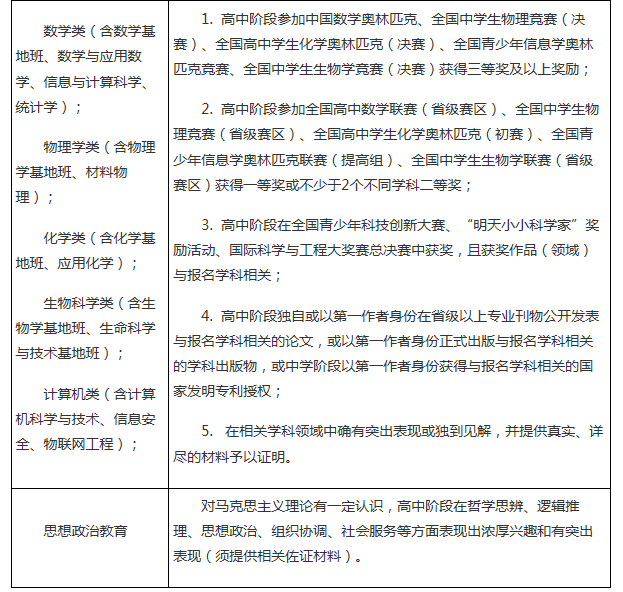 符合生源省(自治區(qū)、直轄市)2017年普通高校招生報名條件,理想信念堅定、品行端正、遵紀(jì)守法、誠實守信、身心健康,相關(guān)科目成績優(yōu)秀,在文學(xué)、歷史、哲學(xué)、國學(xué)、思想政治、數(shù)學(xué)、物理學(xué)、化學(xué)、生物學(xué)、計算機等10個領(lǐng)域的某一領(lǐng)域具有鮮明學(xué)科特長和一定創(chuàng)新潛質(zhì)的學(xué)生均可報名申請。
