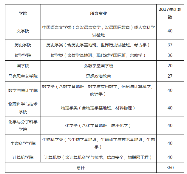 附件一:武漢大學(xué)2017年自主招生分專業(yè)計劃