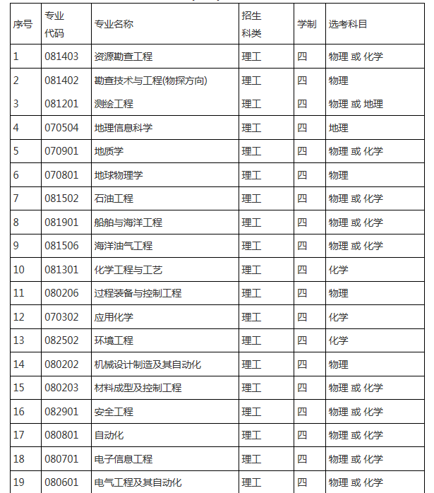 中國石油大學(xué)(華東)自主招生專業(yè)目錄