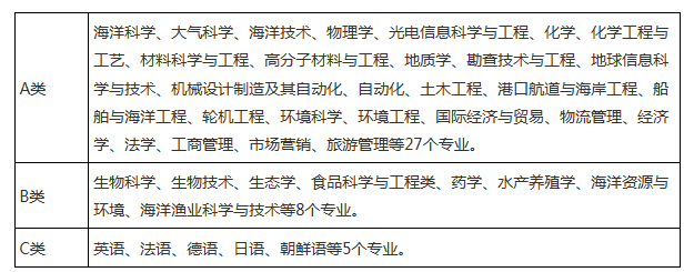 附表:中國(guó)海洋大學(xué)2017年自主招生專業(yè)分類表