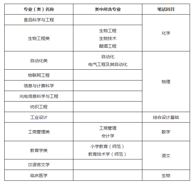 1、筆試:時(shí)間2小時(shí),滿分150分。各專(zhuān)業(yè)(類(lèi))筆試科目見(jiàn)下表: