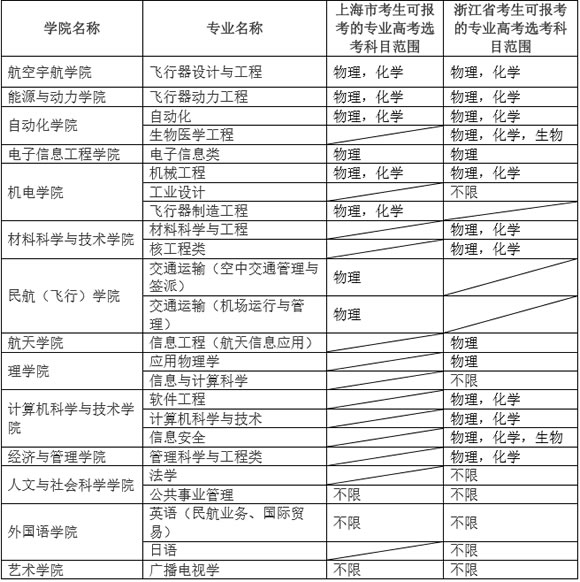 上海市和浙江省的考生可報(bào)考自主招生的專業(yè)(標(biāo)注選考科目)如下: