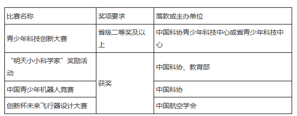 (2)高中階段在以下科技創(chuàng)新類競(jìng)賽中獲得相應(yīng)獎(jiǎng)項(xiàng)的學(xué)生: