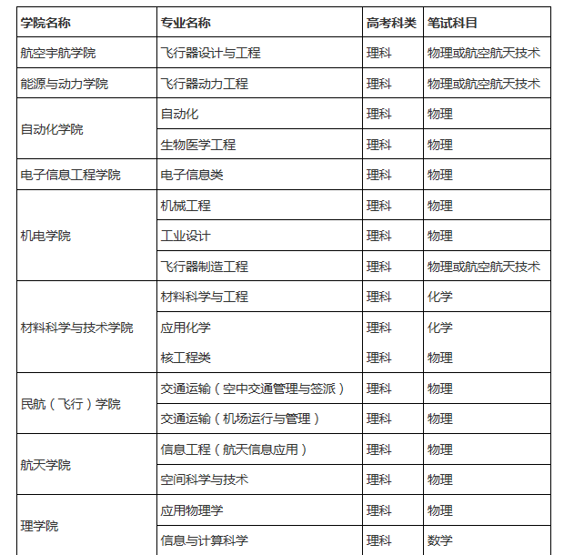 2、考核辦法。航模類考生測(cè)試項(xiàng)目為筆試、飛行操作測(cè)試、室內(nèi)制作三部分,免于筆試類考生直接參加面試,其他類考生須參加筆試和面試。航模類考生筆試測(cè)試科目為航空模型知識(shí),其他考生根據(jù)選報(bào)專業(yè)參加相應(yīng)科目的筆試。面試主要考察學(xué)生專業(yè)潛質(zhì)、綜合素質(zhì)等方面的情況。
